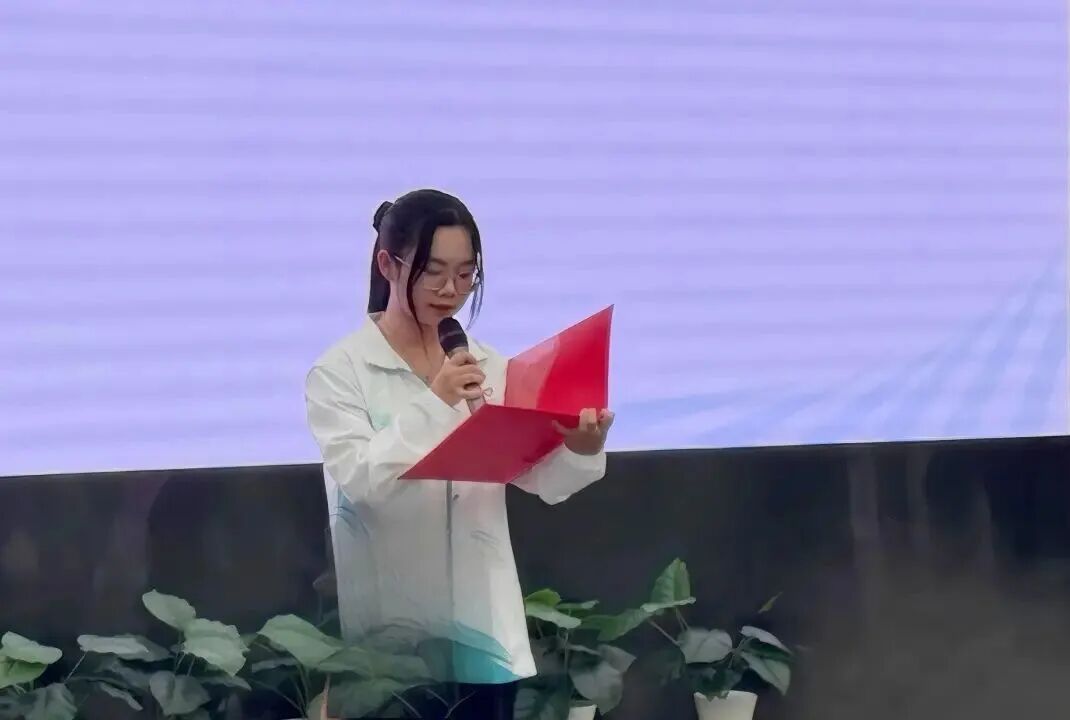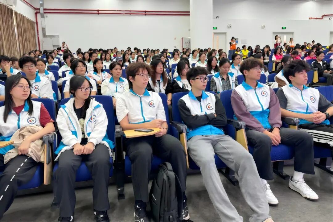 广清城际花都站志愿者代表上台发言,4位志愿者代表为大家展示了本次志愿服务的新服饰,新装以简约雅致为基调,融岭南风情于现代设计之中,蓝绿色的水波纹样恰似珠江水系奔涌不息,既呼应了粤港澳大湾区深厚的海洋文化底蕴,也契合“绿色办赛”的生态理念。